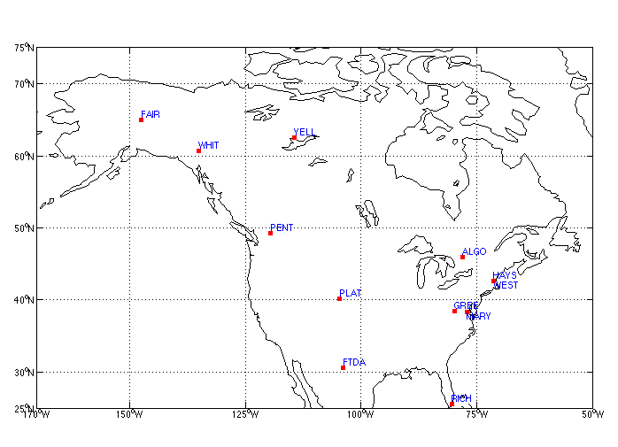 Figure 2: VLBI stations used to derive the new ITRF96-NAD83 transformation.